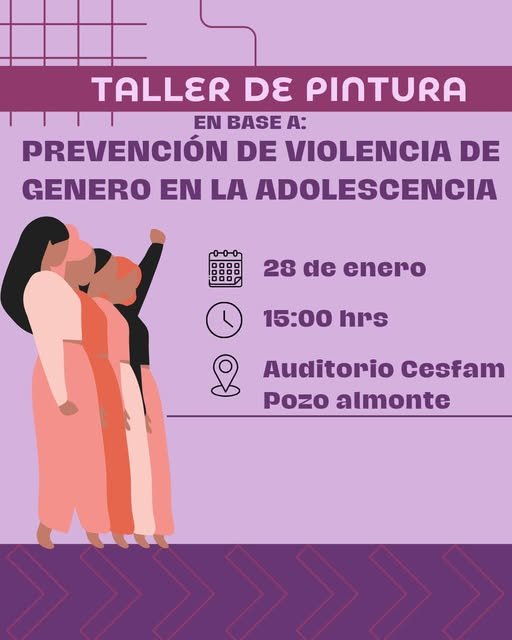 Estimada comunidad, extendemos la invitación a participar en el taller de pintura, enfocado en la prevención de la violencia de genero a todos, todas y todes los adolescentes entre 10 y 19 años
