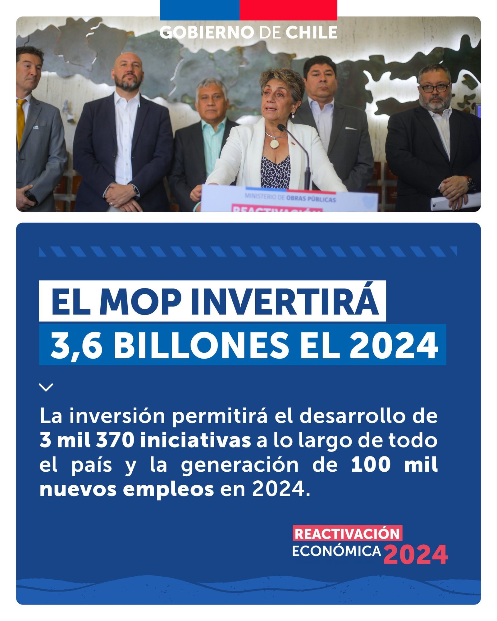 Leer más »MOP anunció presupuesto 2024 de $3,6 billones y la generación de 100 mil nuevos empleos