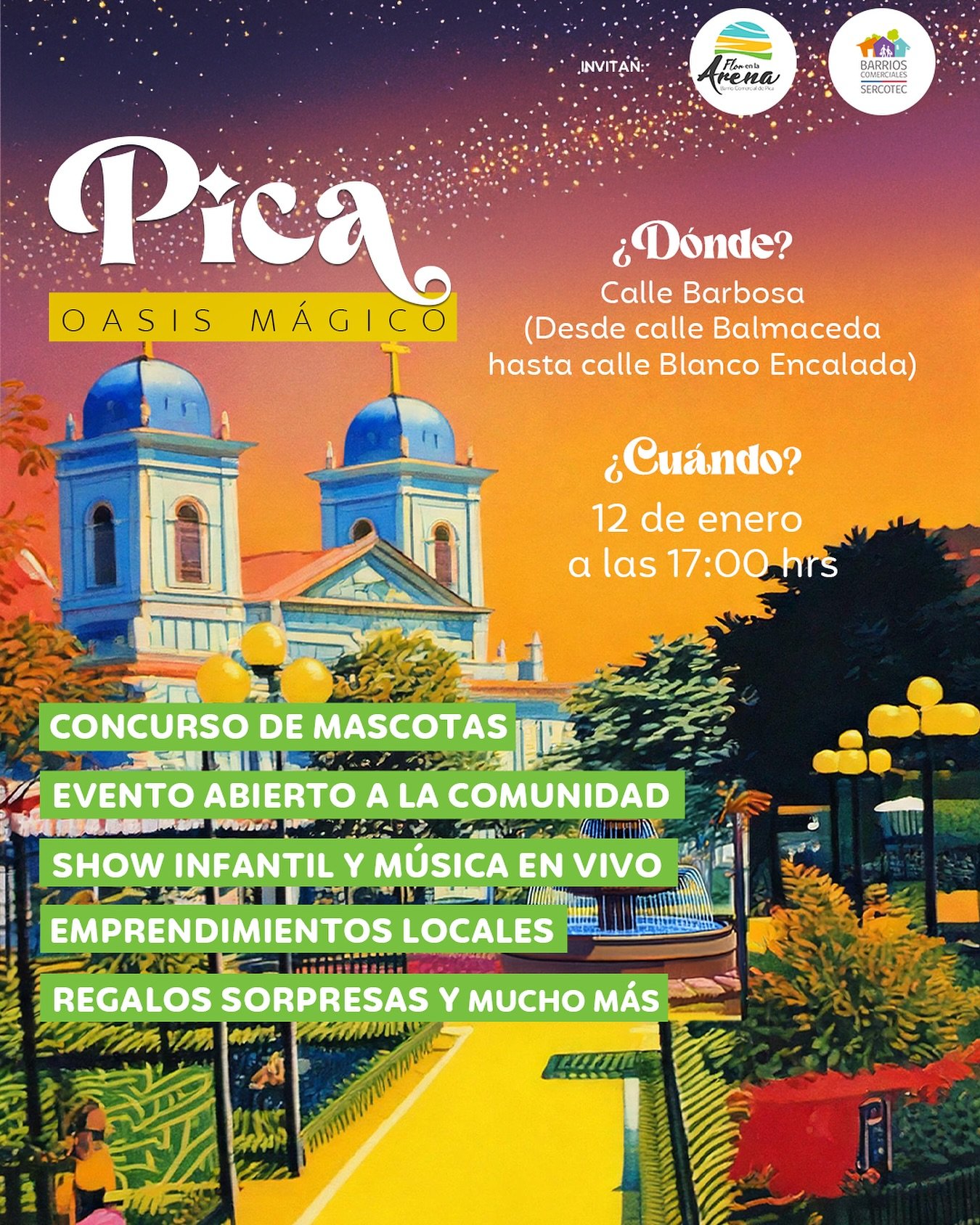 Pica se prepara para ser el epicentro de una jornada llena de alegría, cultura y tradiciones con el evento “Oasis Mágico”, organizado por el Barrio Comercial «Flor en la Arena» en colaboración con el programa Barrios Comerciales de Sercotec. Este domingo 12 de enero, a partir de las 17:00 horas, …