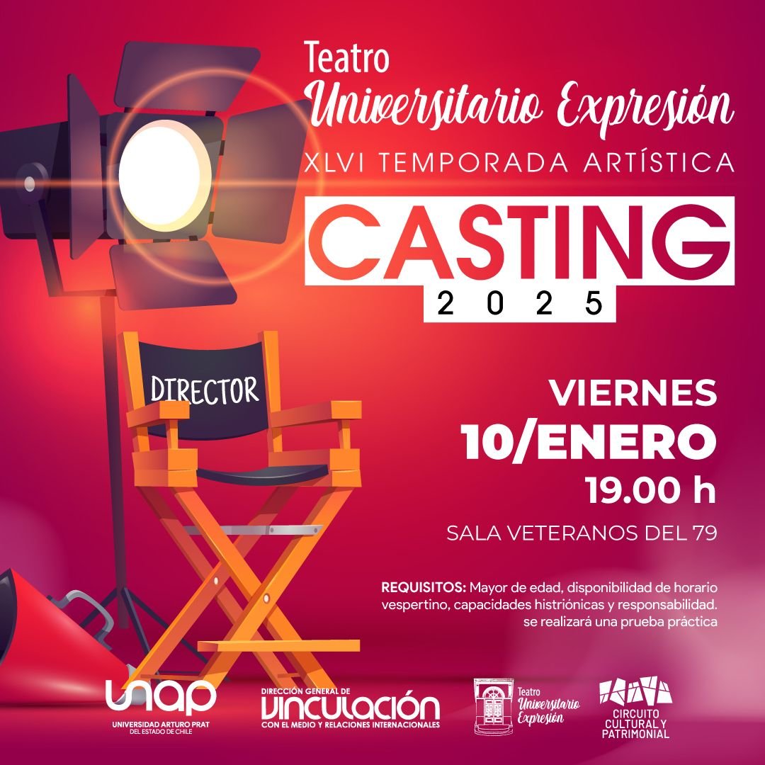 En el marco de la XLVI Temporada Artística, el Teatro Universitario Expresión, dependiente de la Universidad Arturo Prat, invita a la comunidad a disfrutar de una variada y entretenida programación veraniega pensada para jóvenes, adultos y niños. Las actividades se realizarán en la emblemática Sala Veteranos del 79, ubicada en …