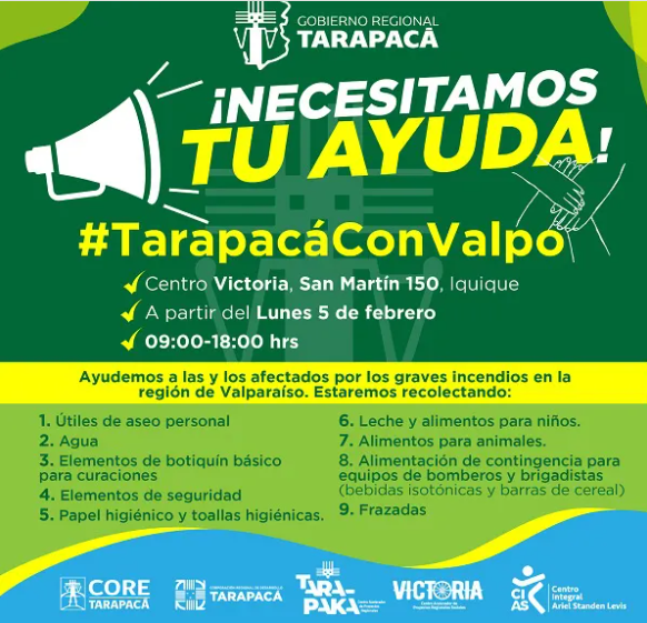 Leer más »Gore de Tarapacá inicia campaña #TarapacáConValpo para ayudar a los afectados por los incendios