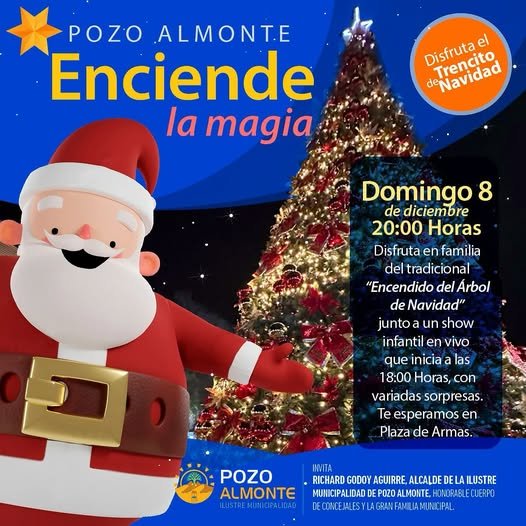 Snreootpdsg8693t329u26291cl62g09t55li 710uafh1il74t74lffhu33 · ¡Atención comunidad de Pozo Almonte ! Se enciende la magia en nuestro comuna, con el típico árbol navideño en la Plaza de Armas. El show comienza este domingo 8 de diciembre desde las 18:00hrs ¡No te lo pierdas, estará maravilloso! #Navidad2024 #PozoAlmonte #ÁrbolNavideño #MerryChristmas #Tamarugal #Tarapacá
